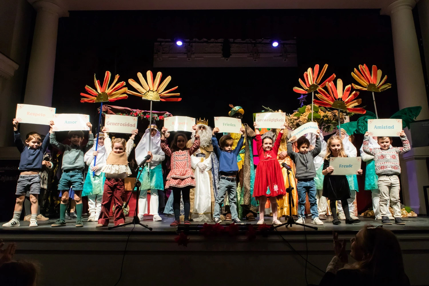 Con su obra Fantasía navideña, el centro ofreció una alegre y colorida puesta en escena multilingüe que conquistó al público en dos pases celebrados en la sede de la Fundación. Más de cien alumnos y alumnas, desde Infantil hasta Bachillerato, subieron al escenario para cantar, actuar y compartir sonrisas, dando vida a un viaje mágico por las tradiciones navideñas de Alemania y España.
